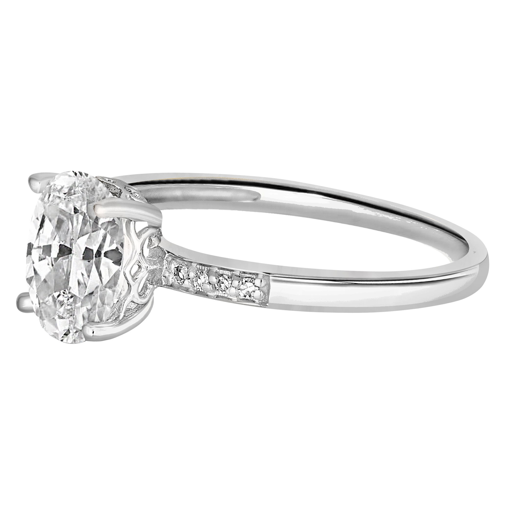 Radiant white topaz is set alongside glittering diamonds in this refined white gold ring.• 8x6mm Oval White Topaz Gemstone• 14K White Gold Setting• Diamond Accents• Semi Precious Birthstone Collection