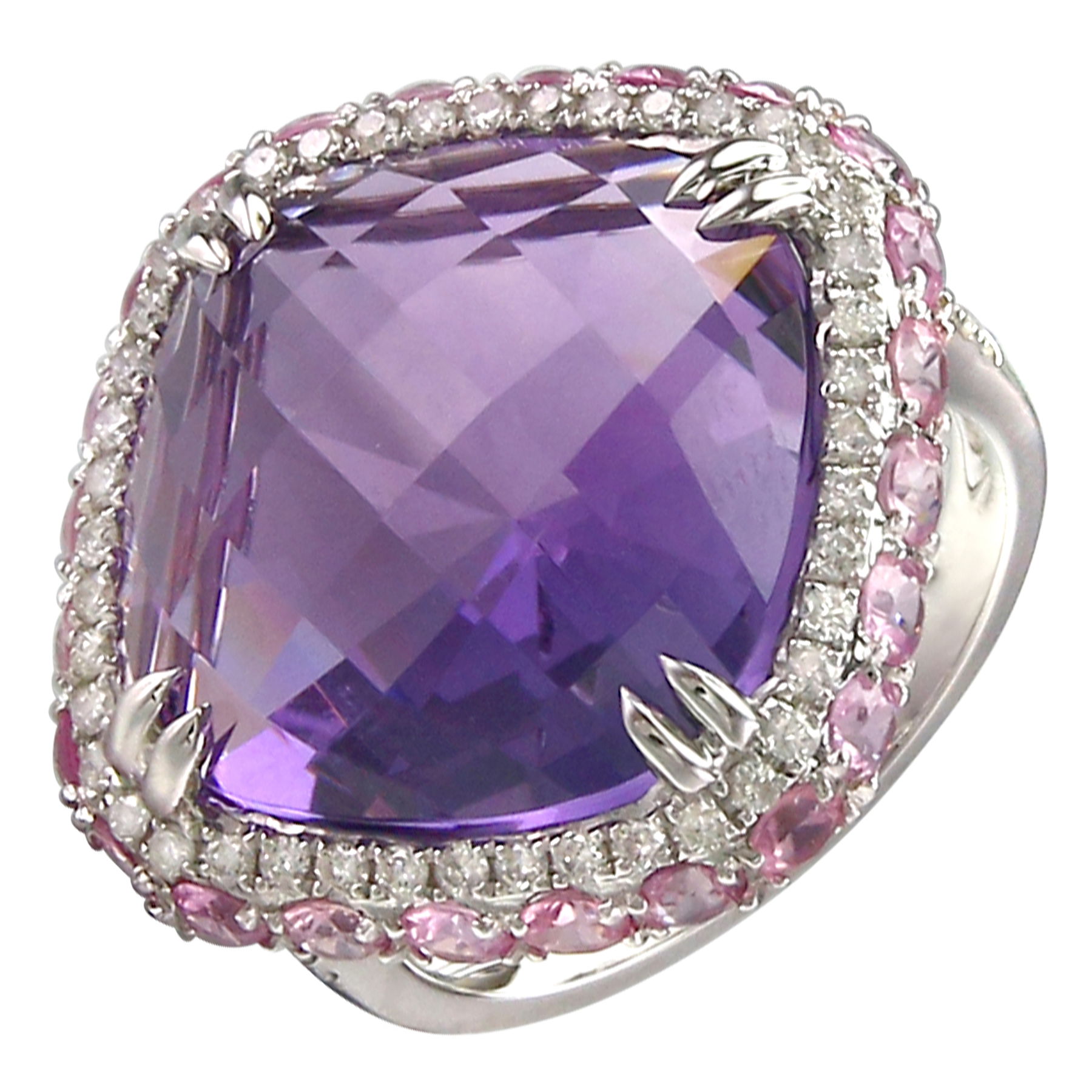 14K WHITE GOLD DIAMOND, PINK SAPPHIRE AND AMETHYST RING
