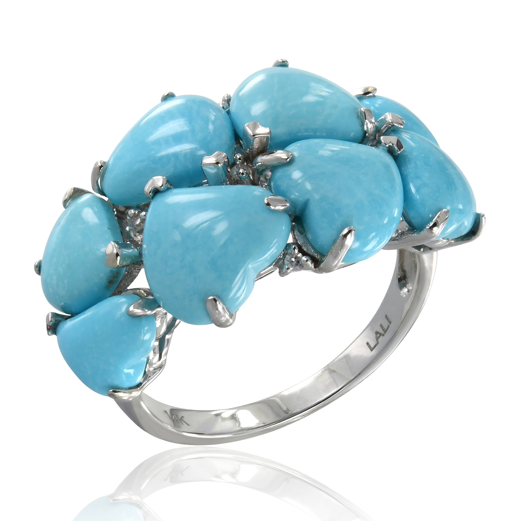 14K WHITE GOLD DIAMOND AND TURQUOISE RING