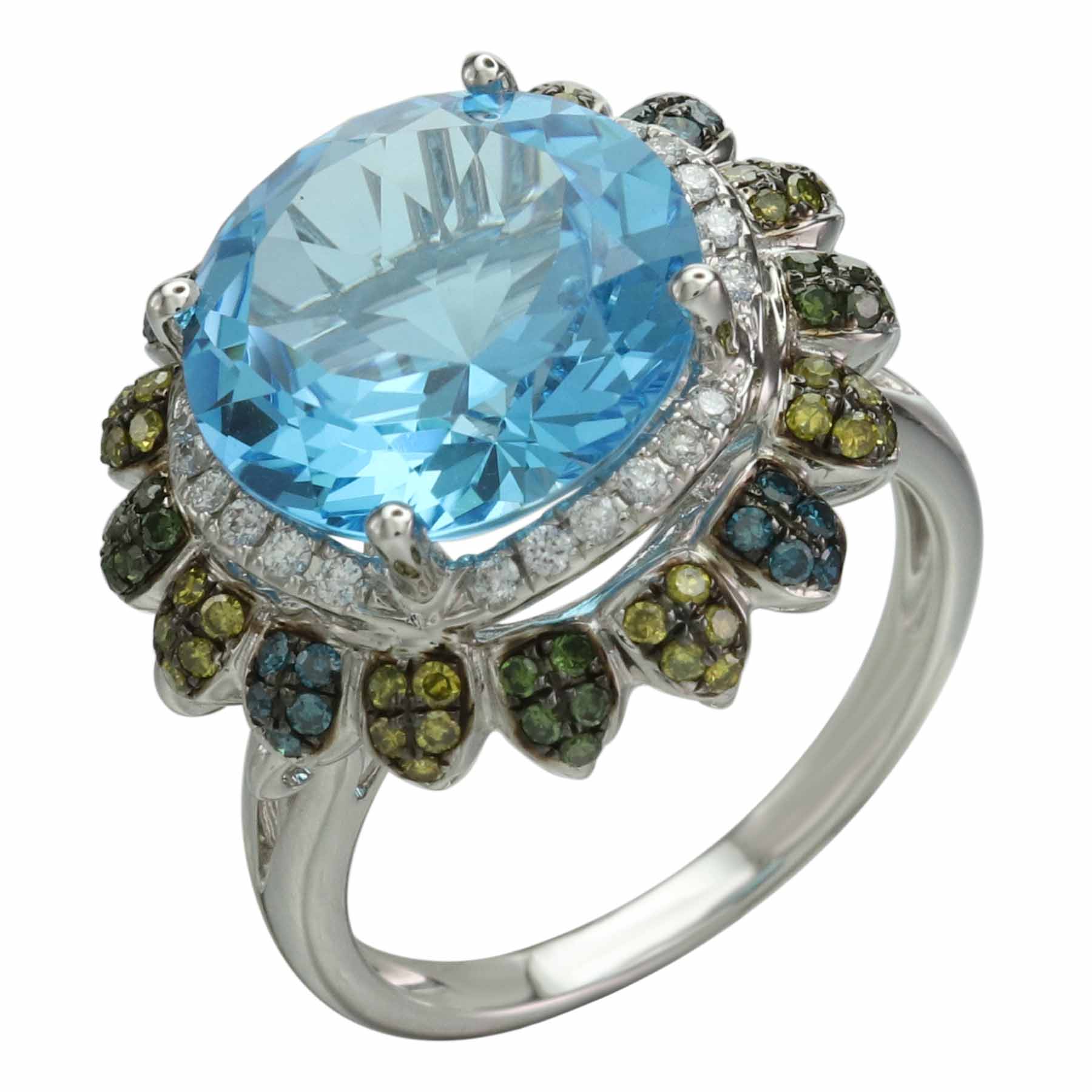 14K WHITE GOLD MULTICOLOR DIAMOND AND SWISS BLUE TOPAZ RING