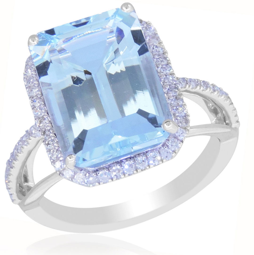 14K WHITE GOLD DIAMOND AND AQUAMARINE RING