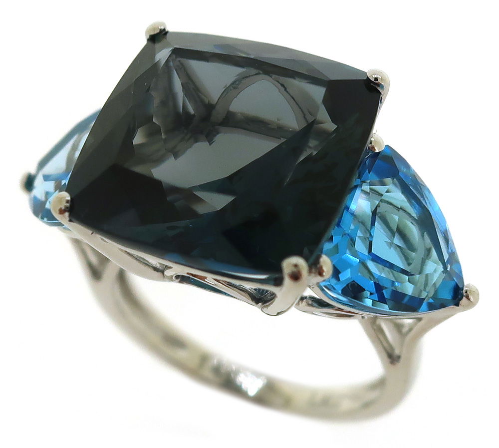 14K WHITE GOLD SWISS BLUE TOPAZ AND LONDON BLUE TOPAZ RING