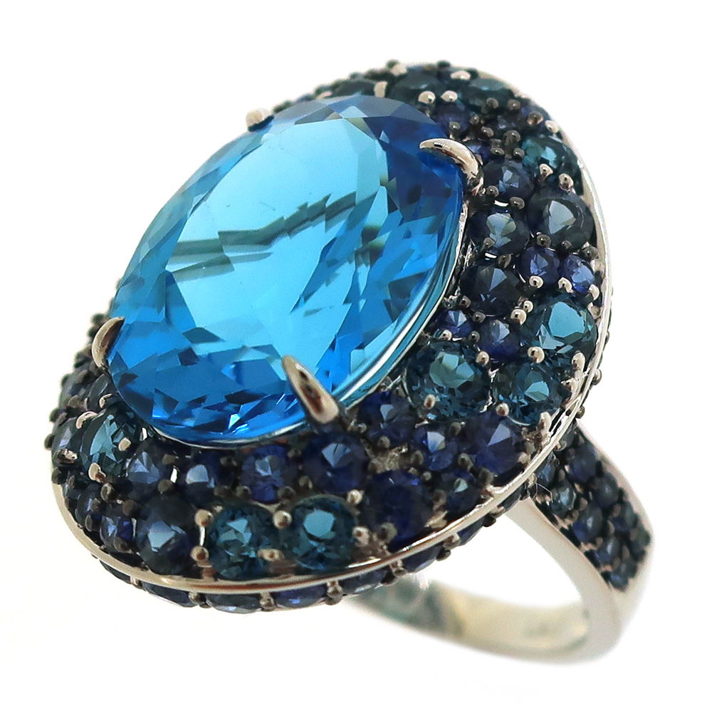 14K WHITE GOLD SAPPHIRE, LONDON BLUE TOPAZ, AND SWISS BLUE TOPAZ RING