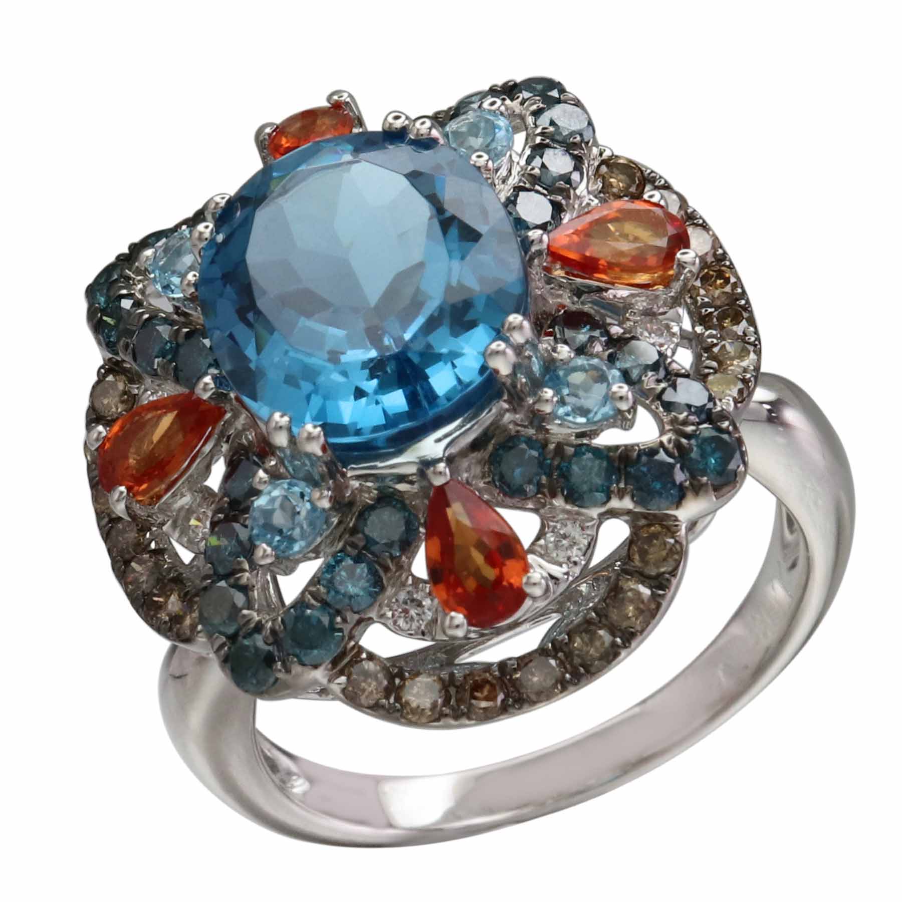 14K WHITE GOLD MULTICOLOR DIAMOND, MULTICOLOR GEM STONE AND LONDON BLUE TOPAZ RING