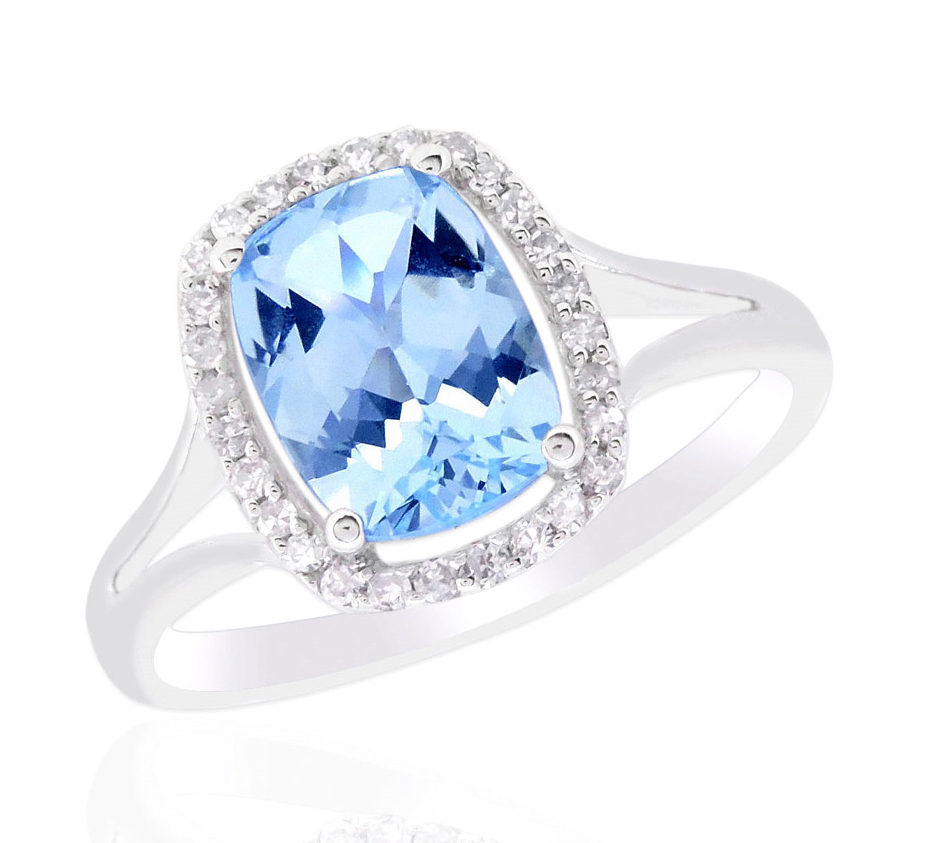 14K WHITE GOLD DIAMOND AND AQUAMARINE RING