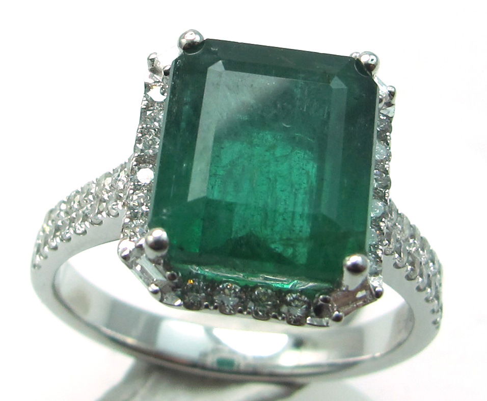 14K WHITE GOLD DIAMOND AND EMERALD RING