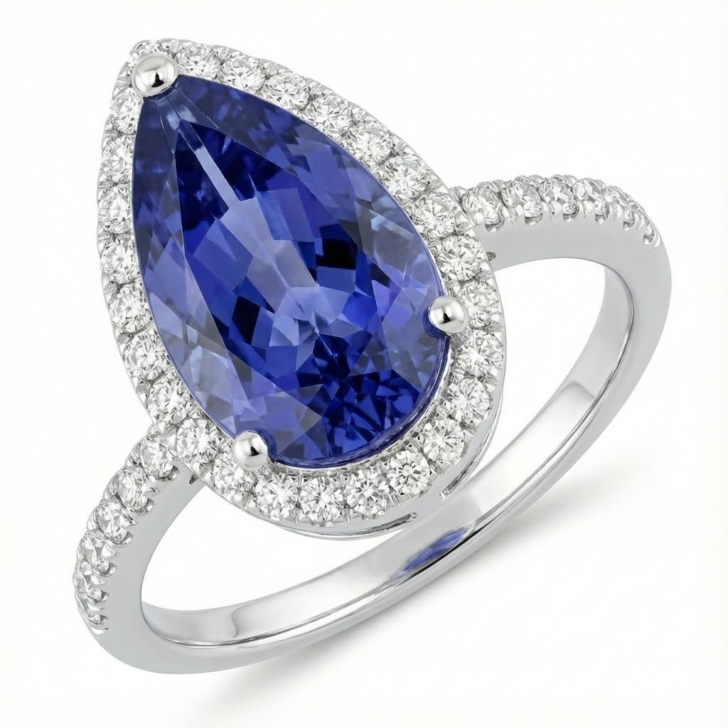 14K WHITE GOLD DIAMOND AND TANZANITE RING