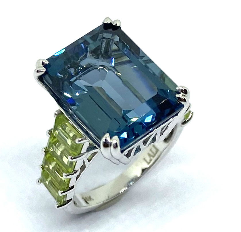 14K WHITE GOLD PERIDOT AND LONDON BLUE TOPAZ RING
