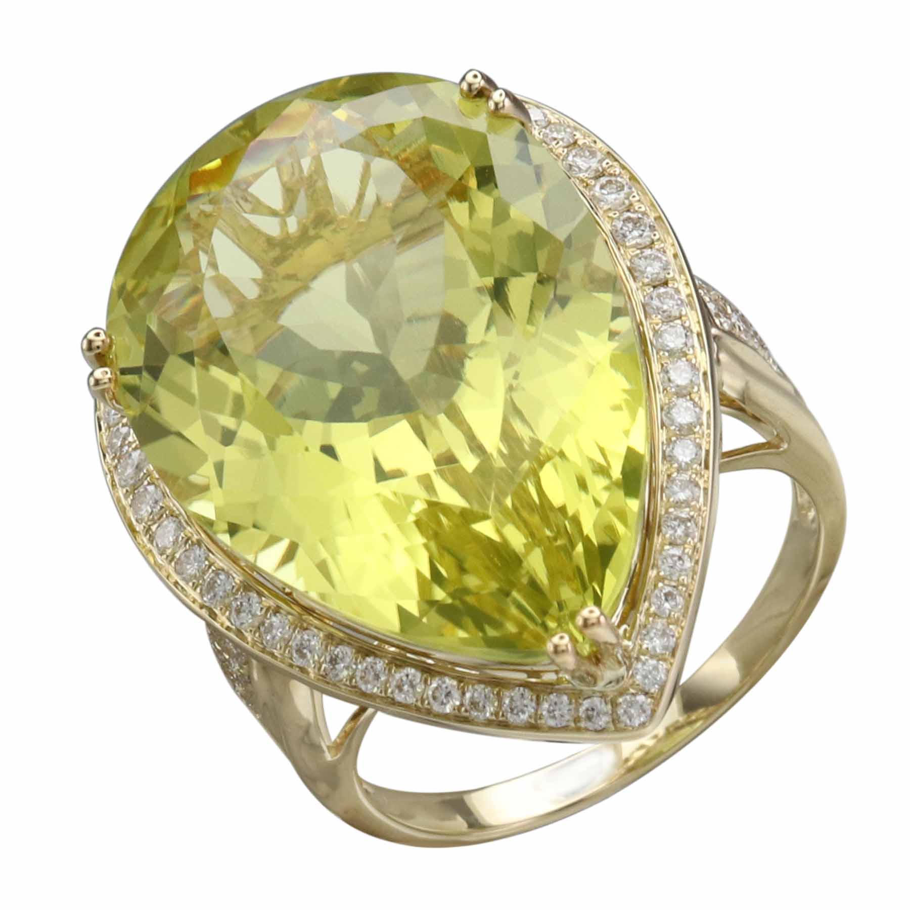 14K YELLOW GOLD DIAMOND AND LEMON QUARTZ RING