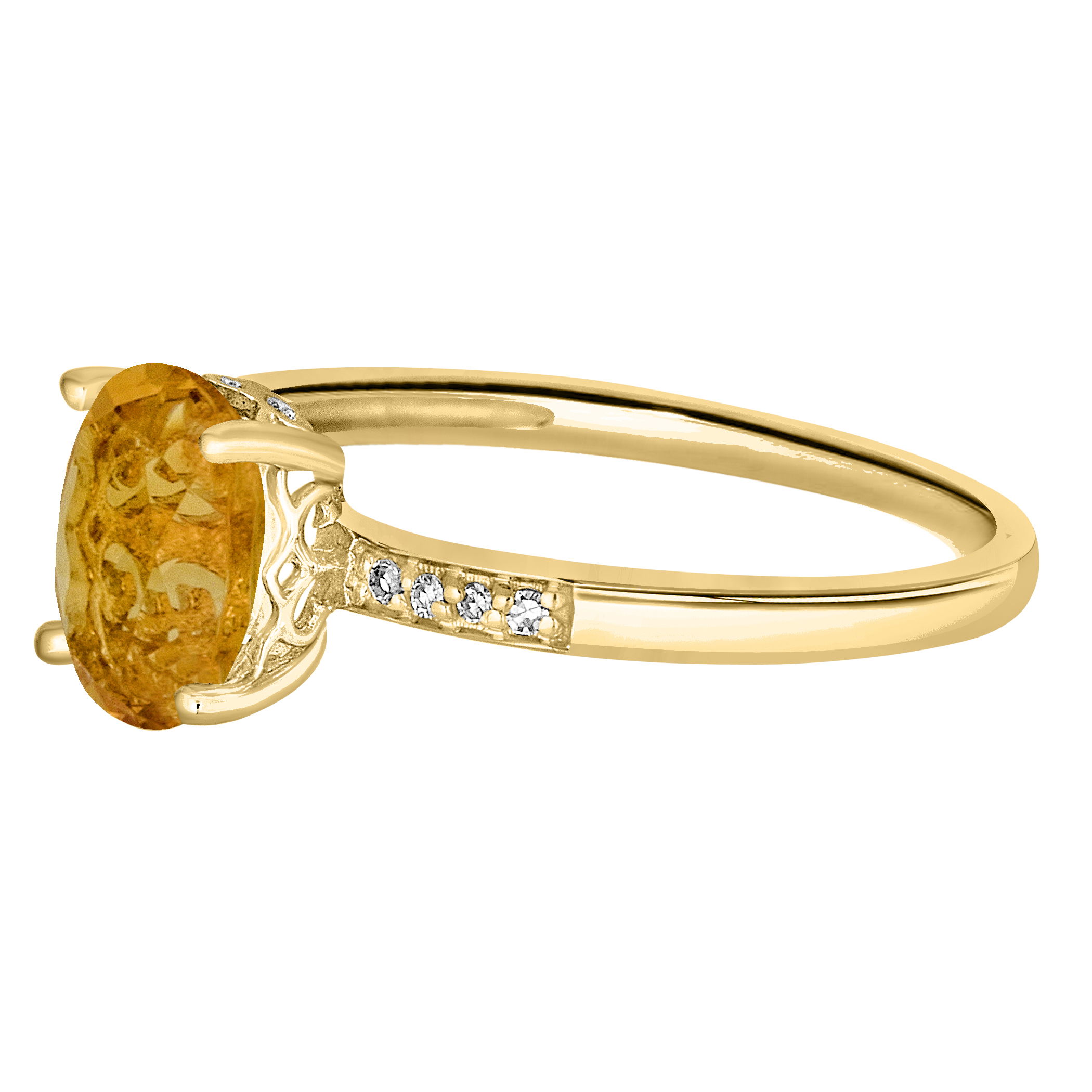 Radiant citrine is set alongside glittering diamonds in this refined yellow gold ring.• 8x6mm Oval Citrine Gemstone• 14K Yellow Gold Setting• Diamond Accents• Semi Precious Birthstone Collection