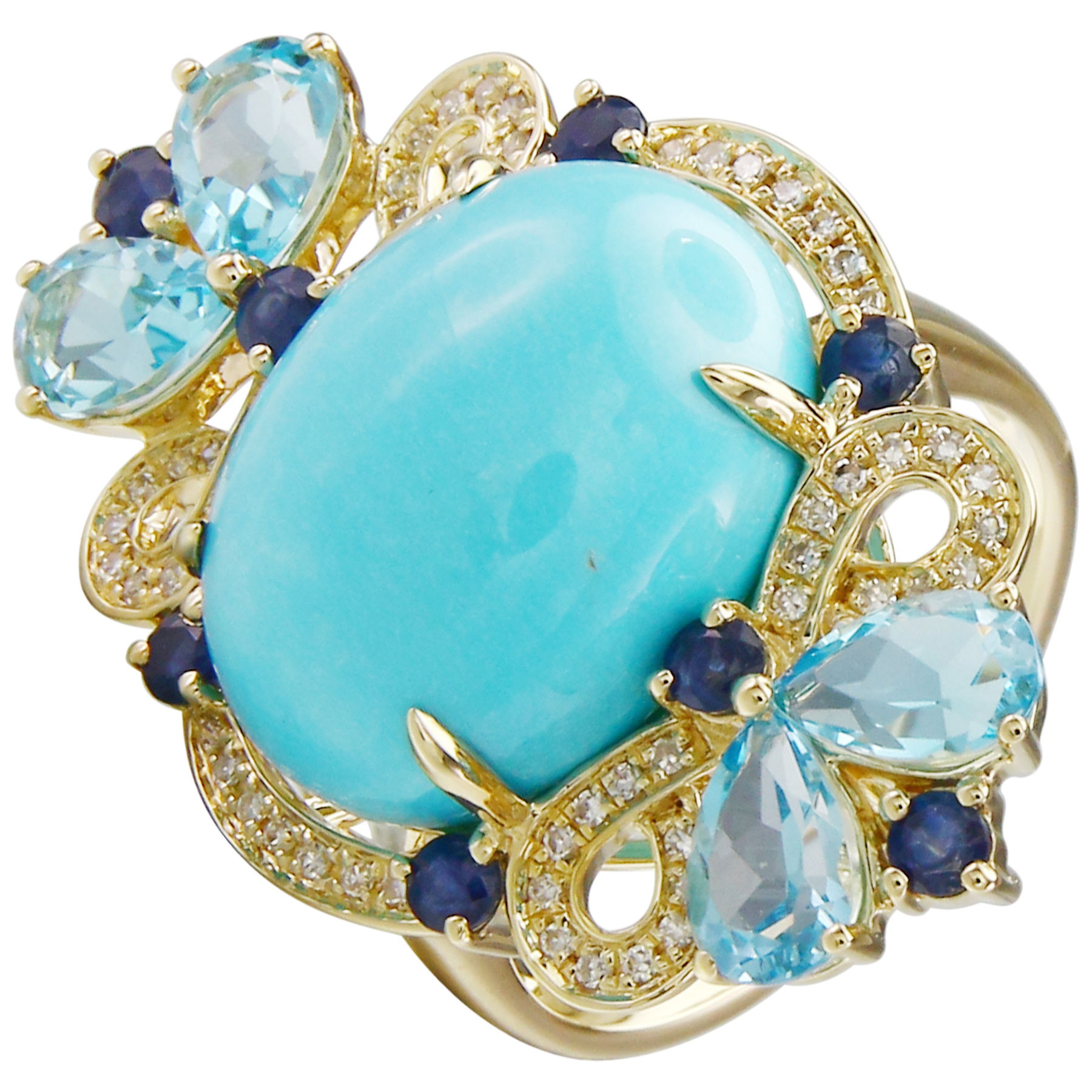 14K YELLOW GOLD DIAMOND, MULTICOLOR AND TURQUISE RING