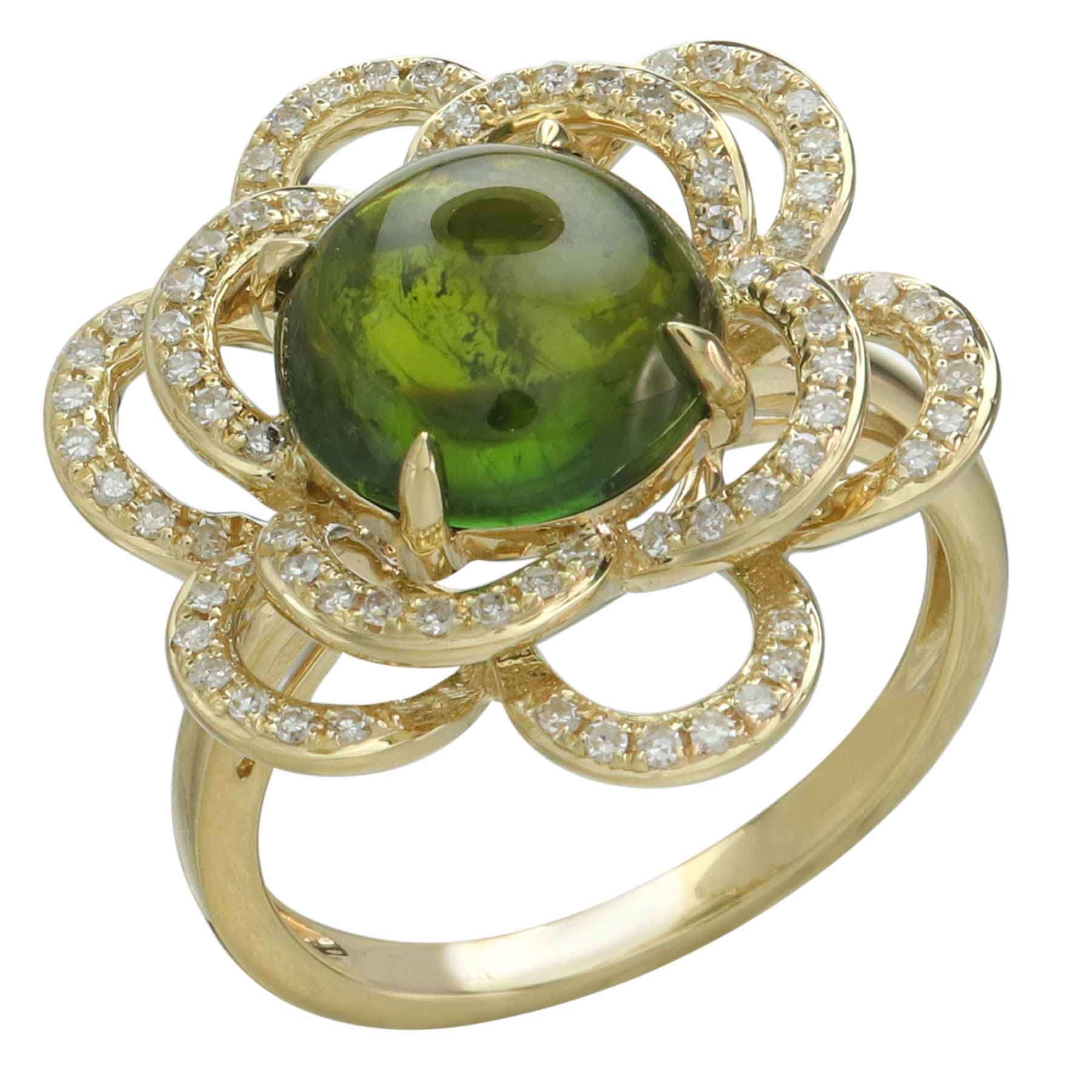 14K YELLOW GOLD DIAMOND AND GREEN TOURMALINE RING