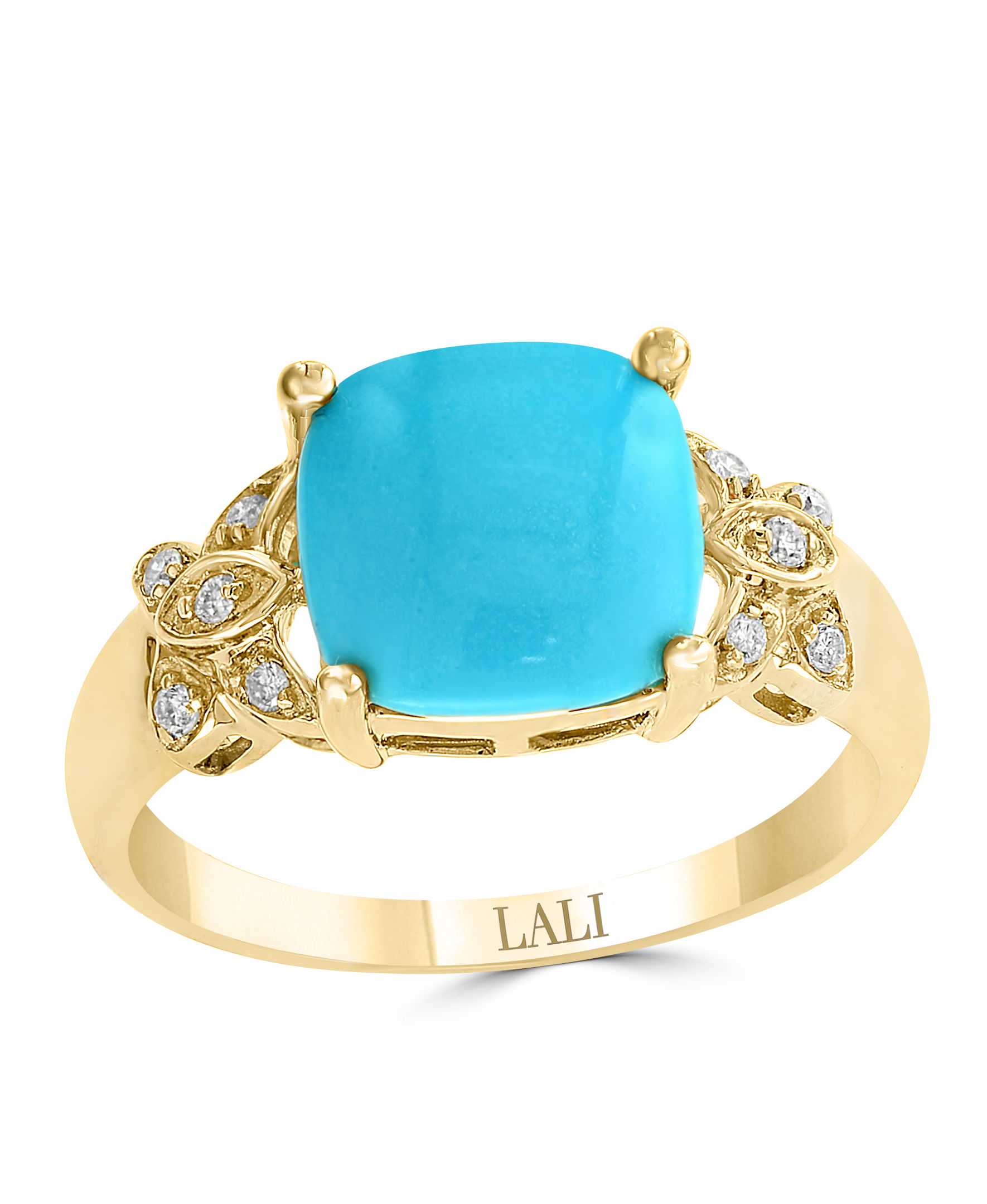 14K YELLOW GOLD DIAMOND AND TURQUOISE RING