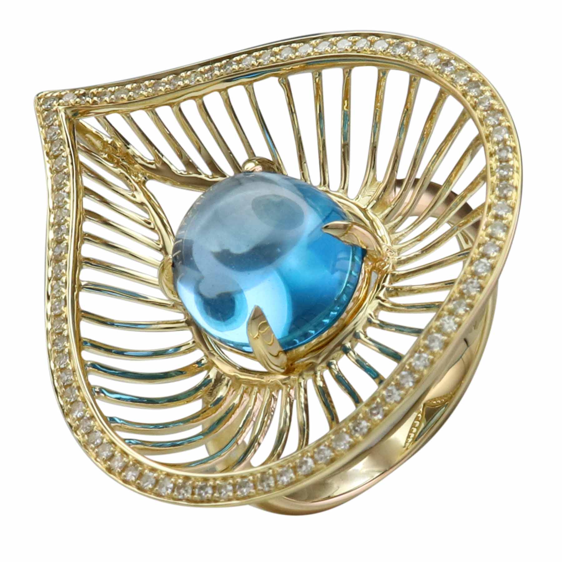 14K YELLOW GOLD DIAMOND AND SWISS BLUE TOPAZ RING