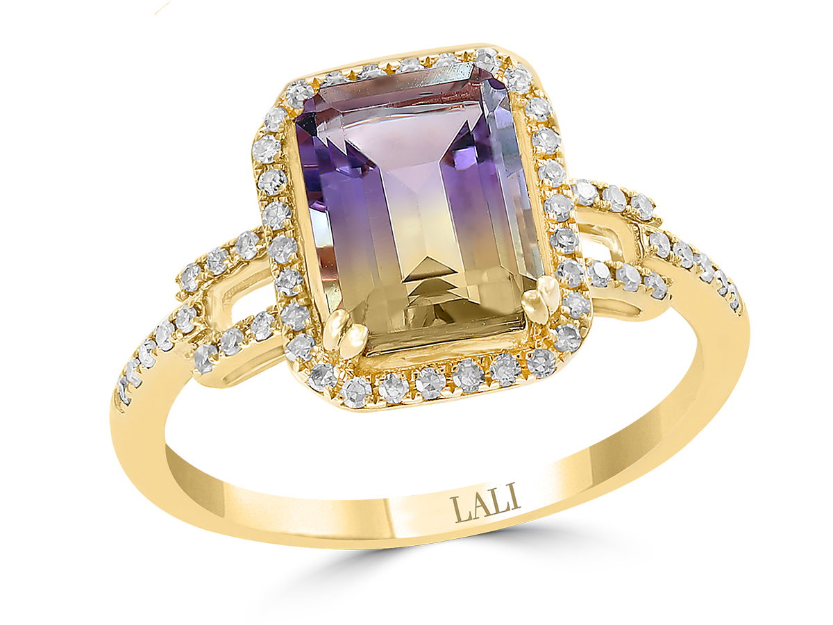 14K YELLOW GOLD DIAMOND AND AMETRINE RING