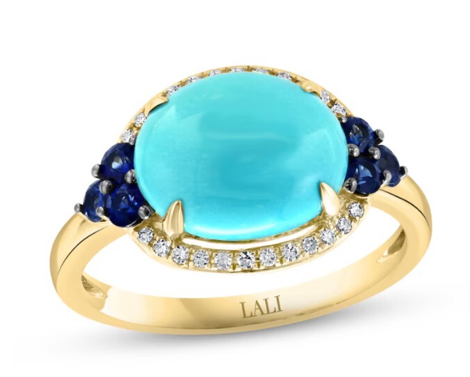 14K YELLOW GOLD DIAMOND, SAPPHIRE AND TURQUOISE RING