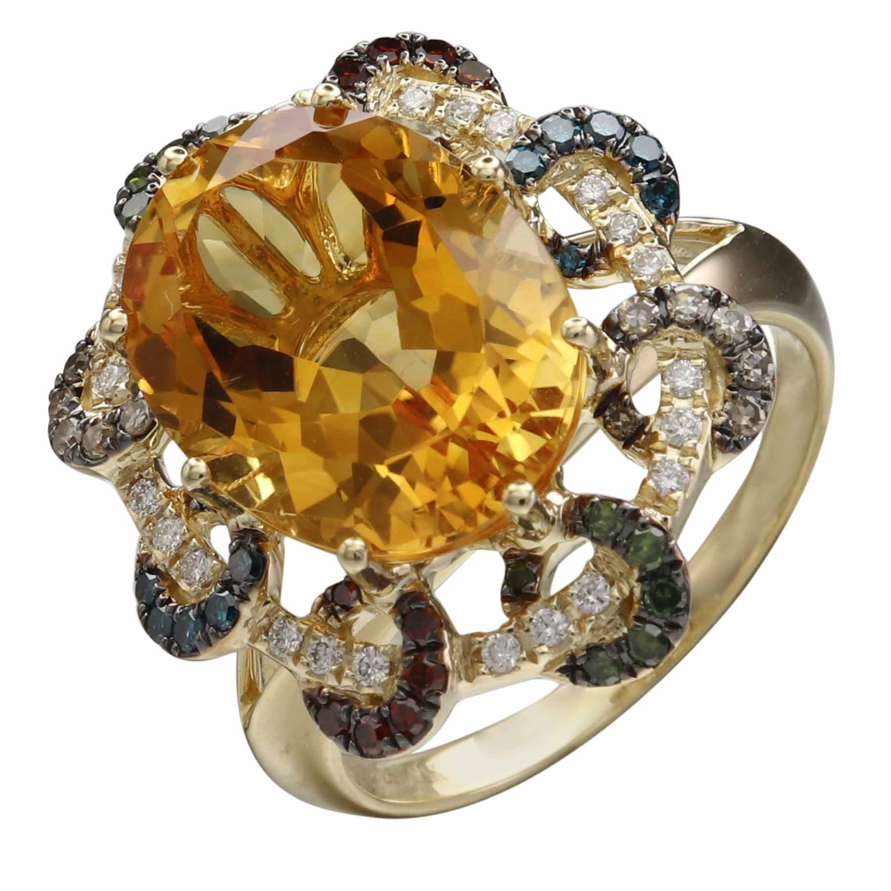14K YELLOW GOLD DIAMOND, MULTICOLOR DIAMOND AND CITRINE RING