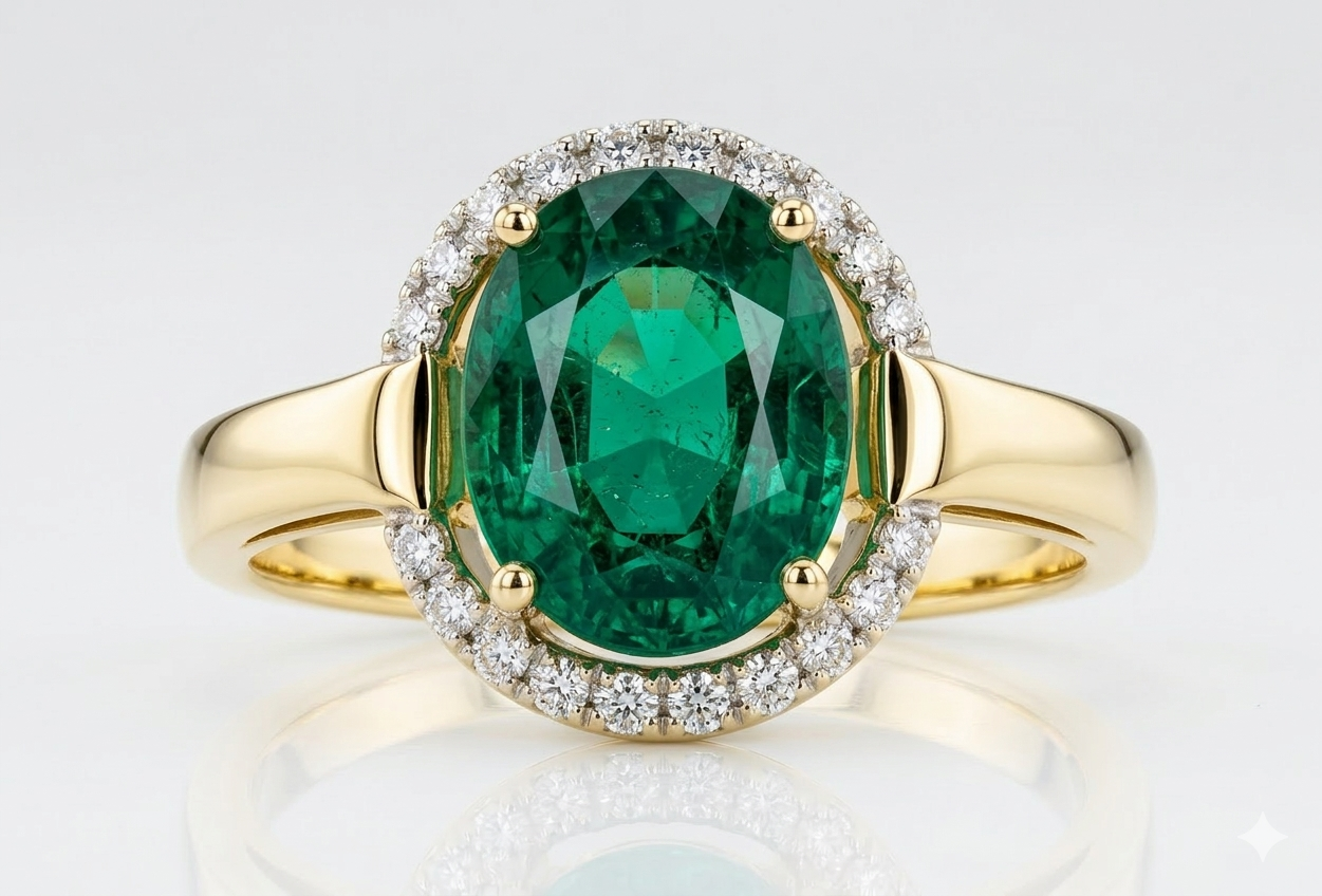 Elevate your elegance with this Limited Edition 14K Yellow Gold Diamond and Emerald Ring from our Emerald and Precious Birthstone Collections. Meticulously crafted in luminous 14k yellow gold, this stunning piece showcases a captivating 9x7mm oval natural emerald at its center, framed by sparkling accent diamonds for a timeless finish. A statement of sophistication and rarity, this exclusive ring is the perfect keepsake for those who cherish luxury and the mystical beauty of May’s birthstone.