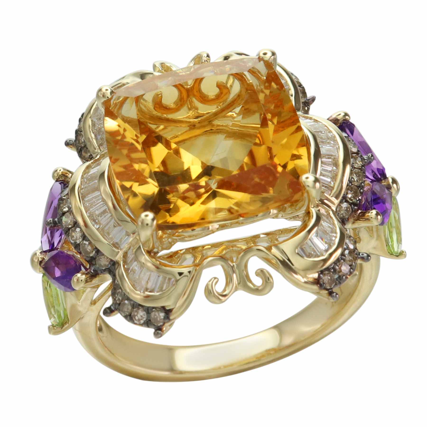 14K YELLOW GOLD DIAMOND, MULTICOLOR GEM STONE AND CITRINE RING