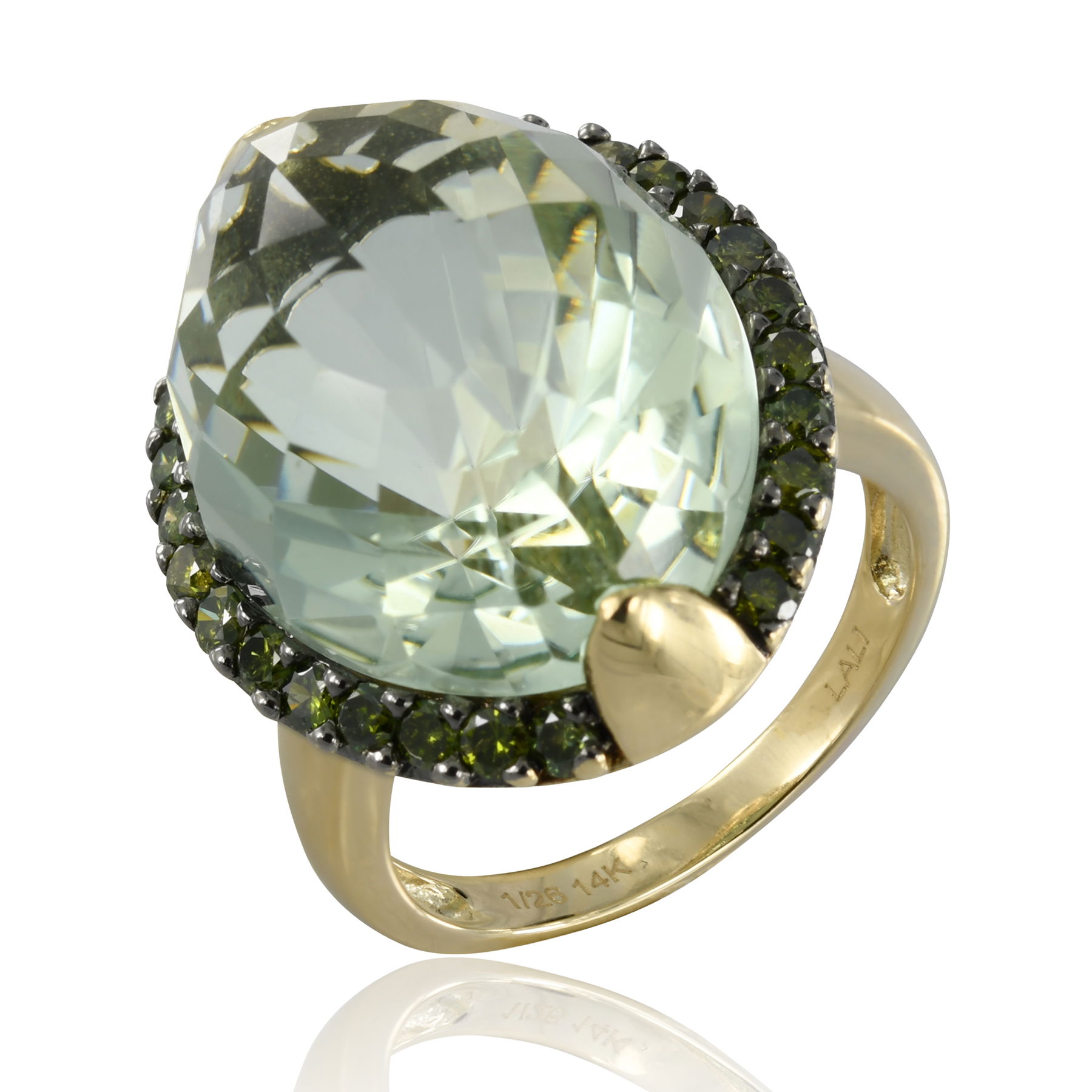 14K YELLOW GOLD TREATED GREEN DIAMOND AND GREEN AMETHYST RING