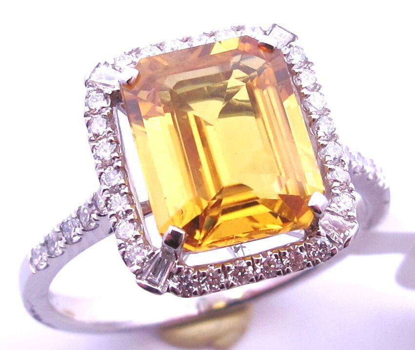14K YELLOW GOLD DIAMOND AND BERYLLIUM HEAT TREATED YELLOW SAPPHIRE RING