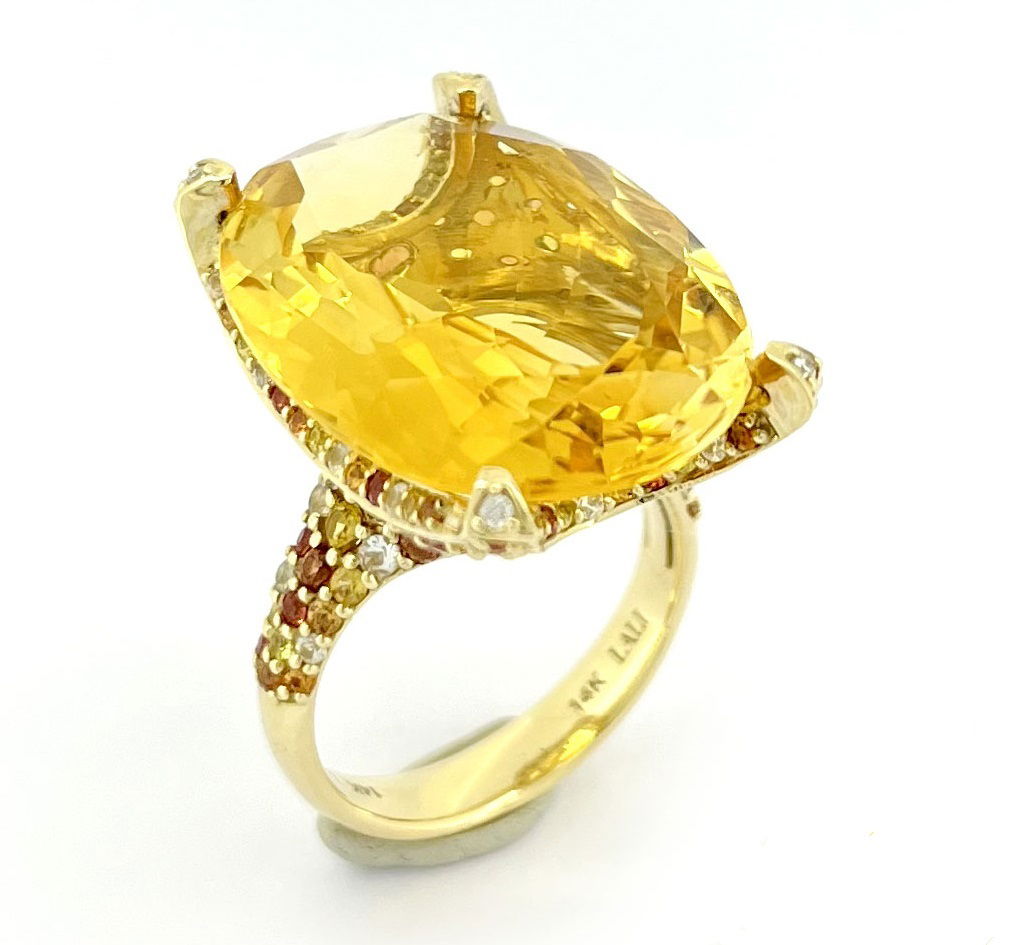 14K YELLOW GOLD DIAMOND, MULTICOLOR SAPPHIRE AND CITRINE RING