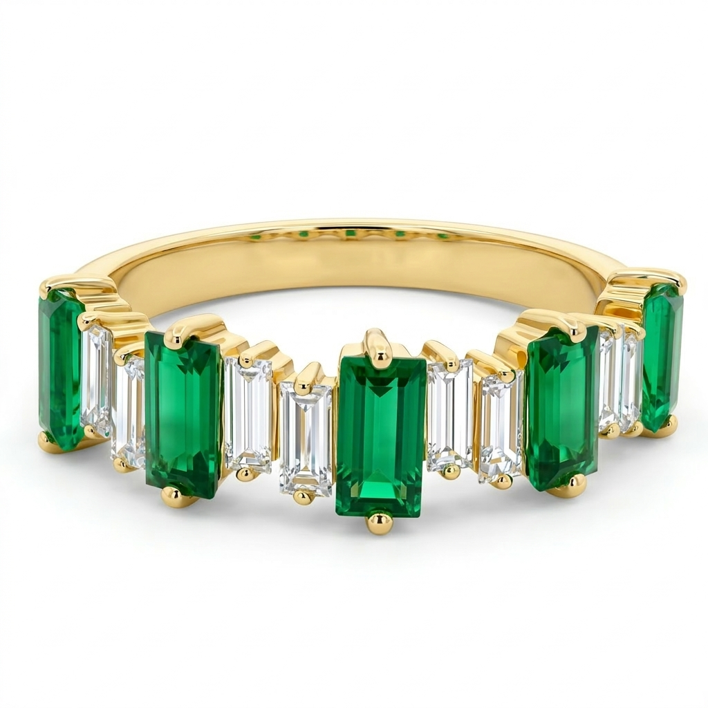 Celebrate timeless elegance with this Limited Edition 14K Yellow Gold Diamond and Emerald Ring from our exclusive Emerald and Precious Birthstone Collections. Crafted in lustrous 14K yellow gold, this exquisite ring features a striking 5x2.5mm baguette-cut emerald, radiating rich green hues symbolic of renewal and prosperity. Sparkling accent diamonds are meticulously set to elevate the natural allure of the emerald, creating a refined and vibrant centerpiece. Perfect as a meaningful gift or a standout addition to your jewelry collection, this limited edition treasure combines luxury and sophistication in every detail.