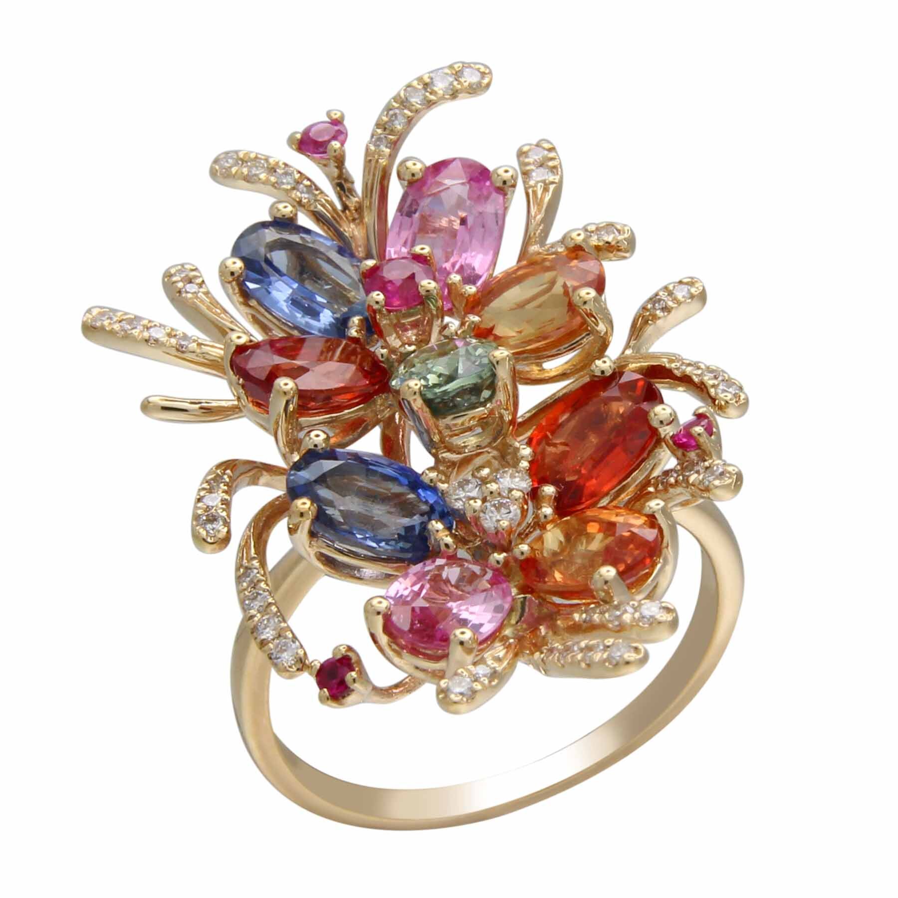 14K YELLOW GOLD DIAMOND AND MULTI COLOR SAPPHIRE RING
