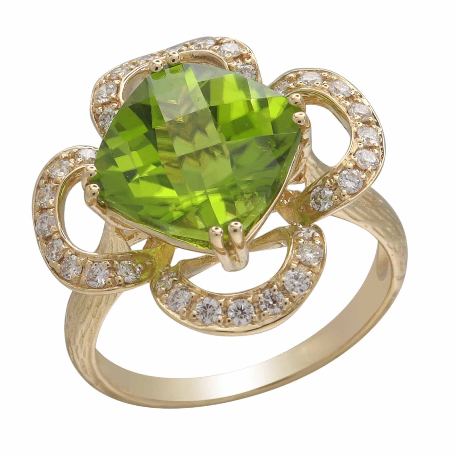 14K YELLOW GOLD DIAMOND AND PERIDOT RING