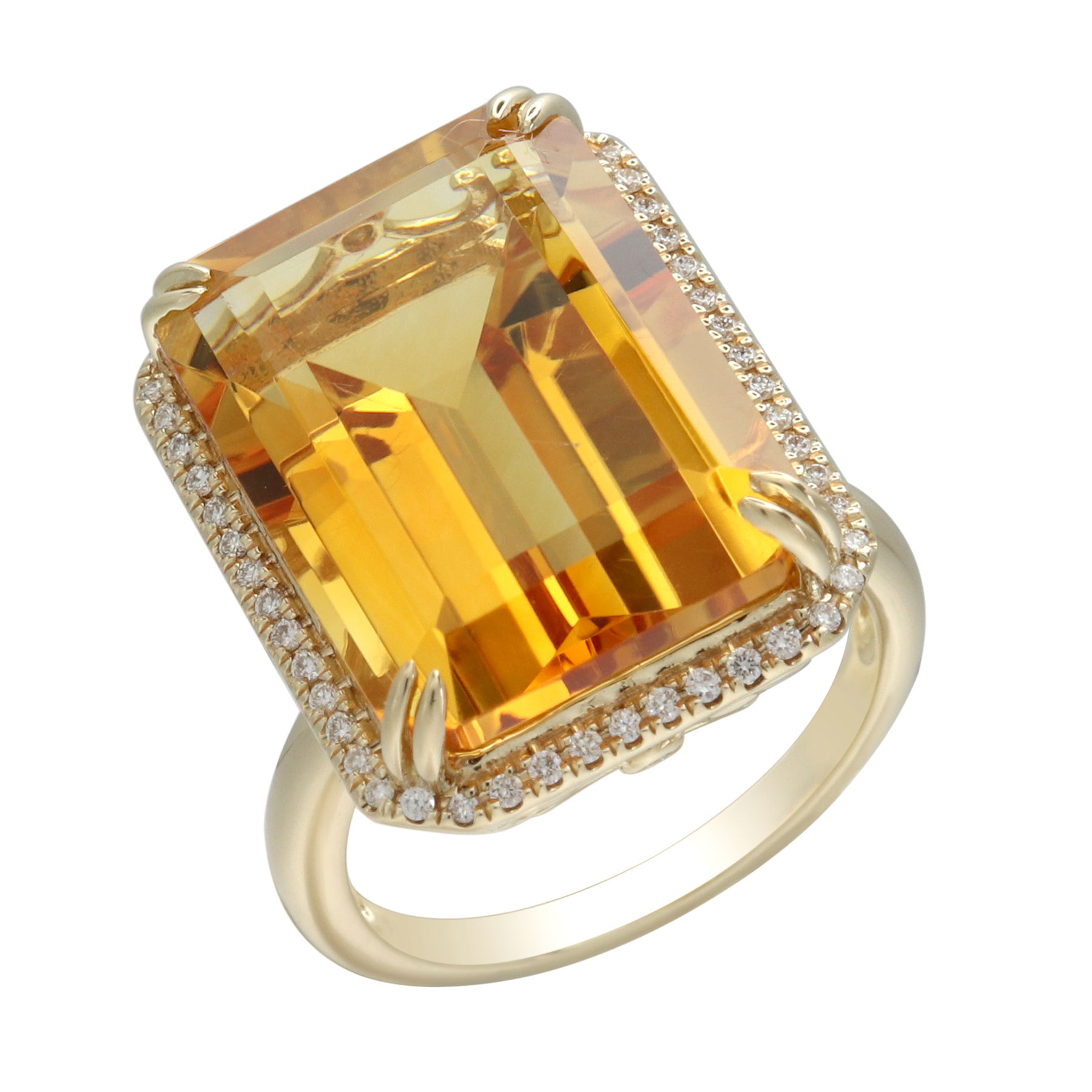 14K YELLOW GOLD DIAMOND AND CITRINE RING